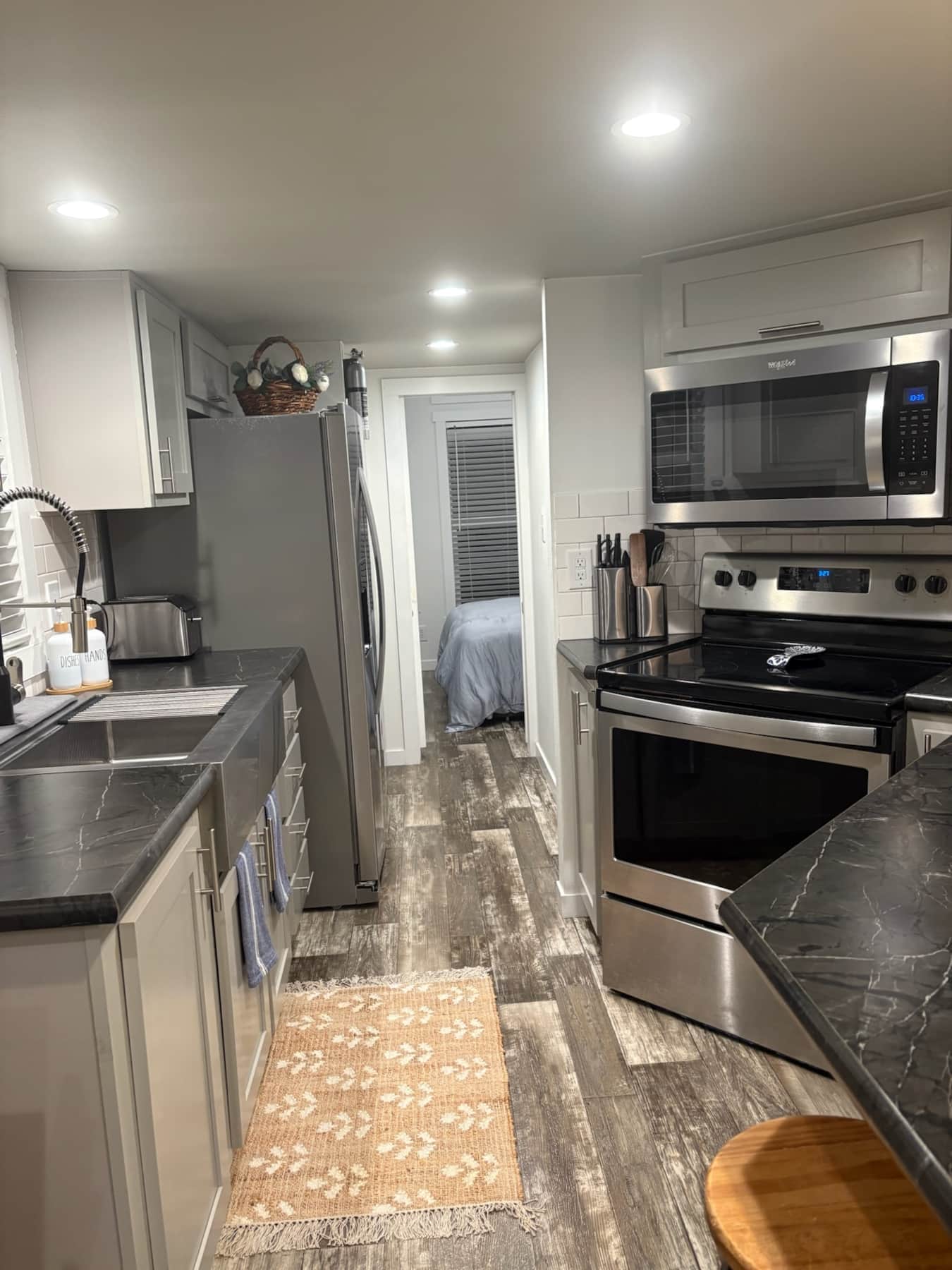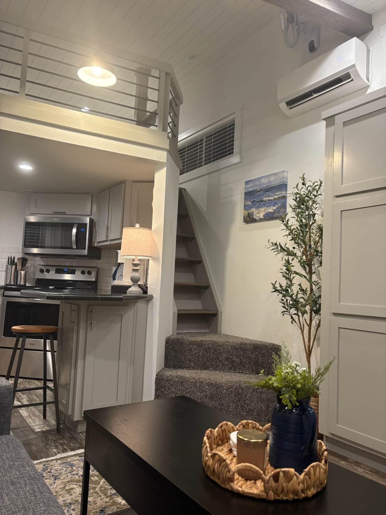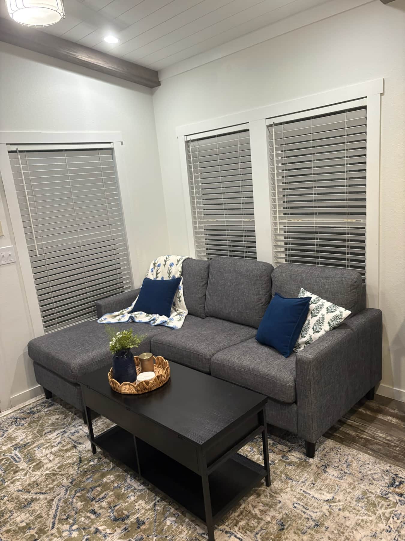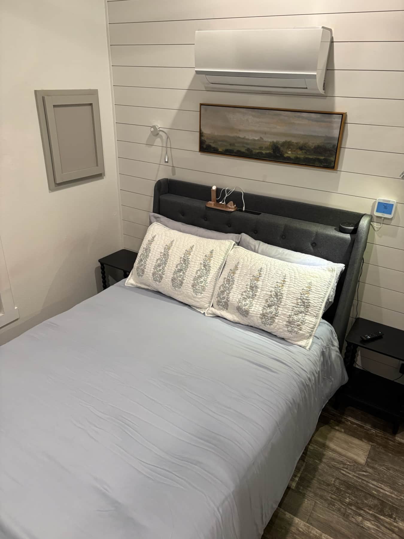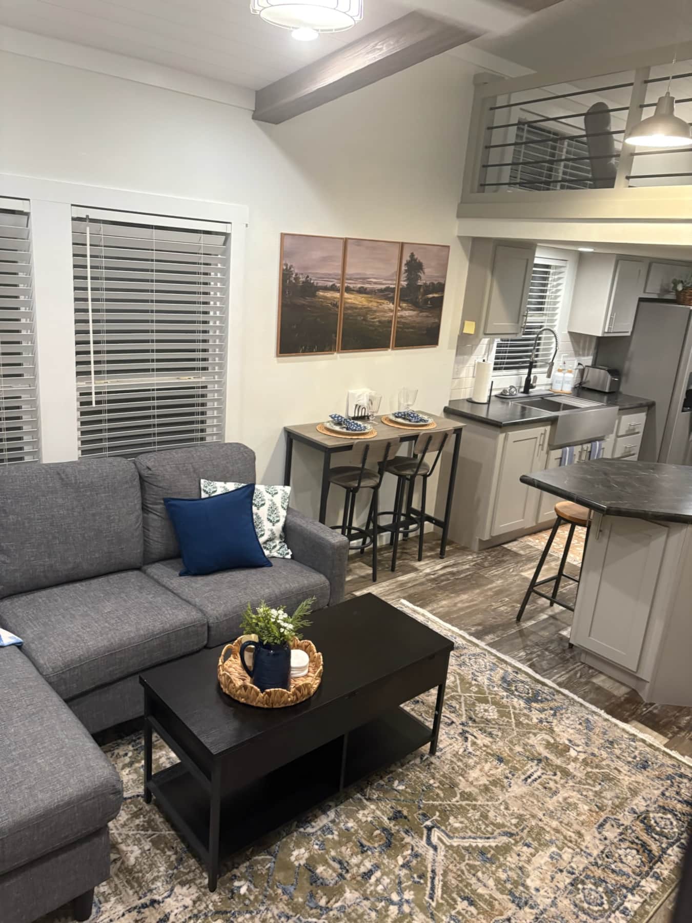 There is a private bedroom with a full-sized bed and a 42" flat-screen TV, 2 twin beds in the loft area (with a third available), a well-stocked kitchen, living room with a 60" flat-screen TV and cozy couch, high-speed Wi-Fi inside and on the patio, chickens in the side yard, books and board games, extra blankets, and plenty of little luxuries to make sure you have a peaceful, comfortable stay.
